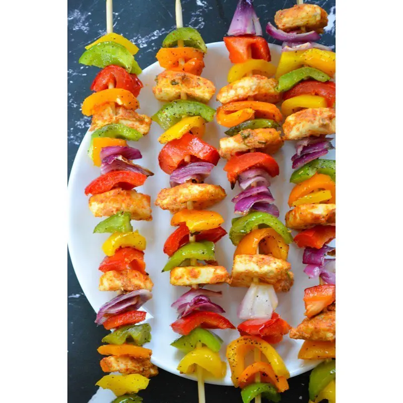 Remove from oven and thread paneer and vegetables onto skewers alternately.